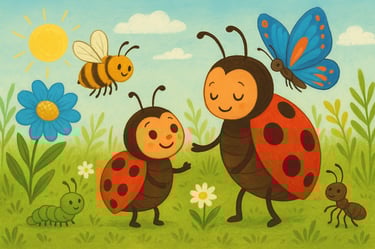Elle avait six jolis points noirs sur son dos rouge. 1, 2, 3, 4, 5, 6 ! Mimi aimait beaucoup voler dans le jardin avec sa maman, car chaque jour elle y faisait de nouvelles découvertes.
